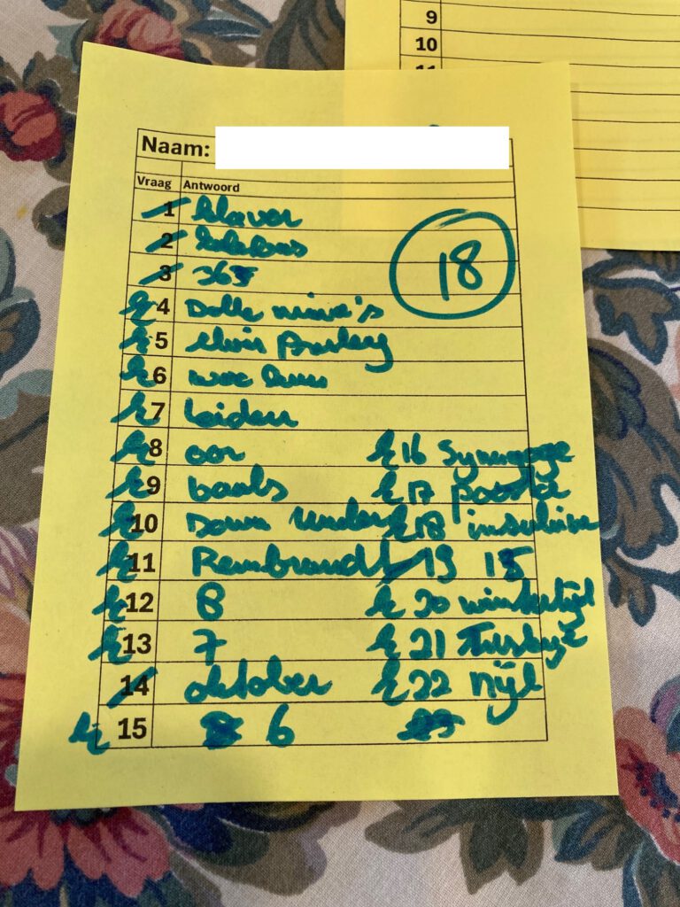 De koffieochtend van februari werd ingevuld met een vragenquiz. Noldy en Ank hadden hun best gedaan om zo veel mogelijk vragen te bedenken over o.a. de gemeente Bunnik. 3 rondes waren nodig om een winnaar aan te kunnen wijzen. Als uw redacteur het goed onthouden heeft ging Rita er met de eeuwige roem naar huis. Net als de nummers 2 en 3 ontving zij een aardigheidje zelfgemaakt door ‘nieuwkomer’ Suzanne.