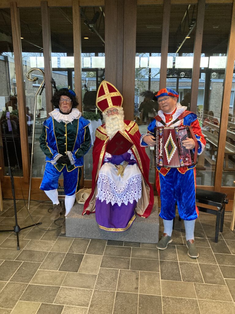 Natuurlijk ontbreekt Sinterklaas niet op de koffieochtend in november. Ook dit jaar was hij met 2 Pieten present in de Dagkerk. En oh oh, wat wist hij weer veel.